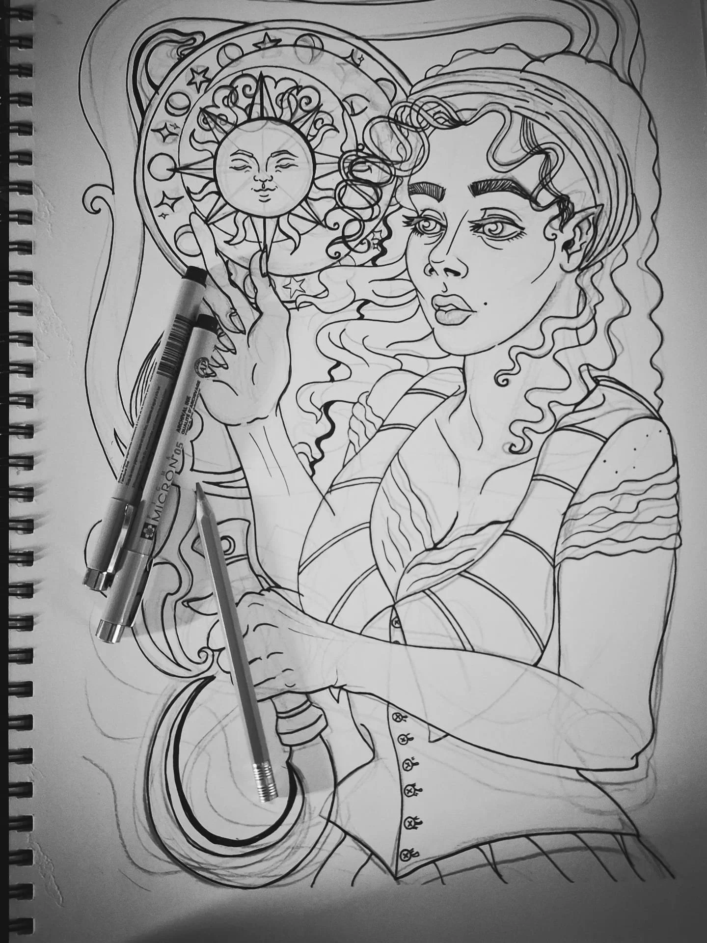 I use polychromos colour pencils, and mix in liquid watercolour, ink, gel pens, and other materials that I feel best suit the piece. Price depends on the size, complexity, and number of subjects in the piece.
